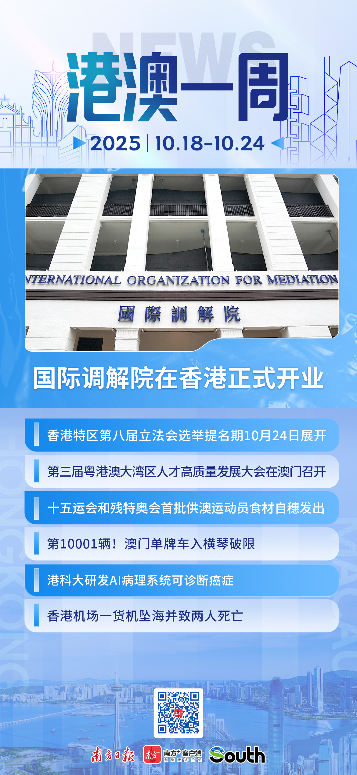 10月20日,国际调解院开业仪式在香港举行,意味着这所专门以调解方式解决国际争端的政府间国际法律组织正式开始运作。30余个国际调解院公约缔约国和签署国以及香港特区各界近200名代表出席仪式。香港特区行政长官李家超出席了开业仪式并致辞,他相信国际调解院将成为备受尊崇及信赖的机构,通过相互尊重及理解以化解争端。详情>>